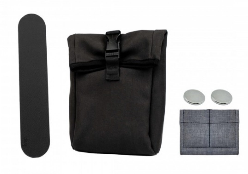 Magneettas maat S inclusief vilten inleg, 2 zilveren magneten en een zwarte metalen strip van 25cm in lederlook.- Stijlvolle tas gemaakt van robuuste, duurzame synthetische vezels - Geschikt voor op reis, thuis of op kantoor - Belastbaar tot 1.5kg - Uitneembaar vilten inleg - Geschikt voor de wasmachine (magneten verwijderen) - Permanente montage van de strip met 3M lijmlaag