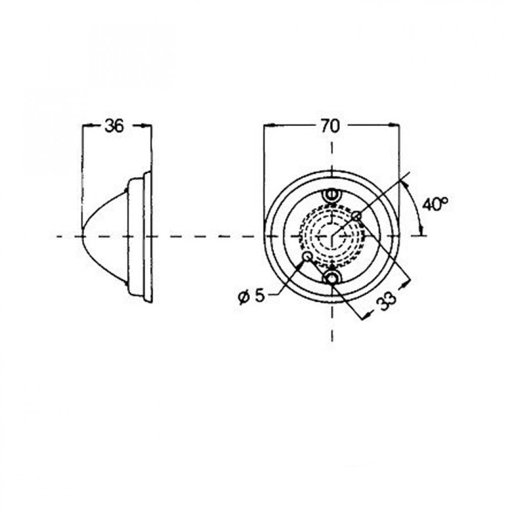 Breedtelicht rond opbouw met 2 gaten voor bevestigingsschroeven M4. Met zwarte onderplaat.