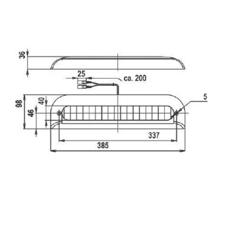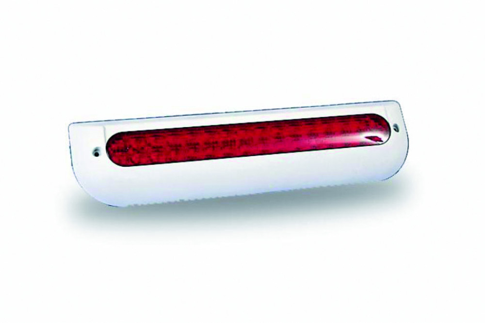 Derde remlicht opbouw met rood glas en 32 LEDs. Witte console.