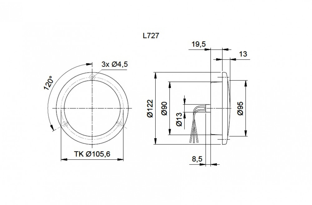 Remlicht en achterlicht inbouw LED van de serie 727. Voor op caravan of camper. Met chromen sierring.